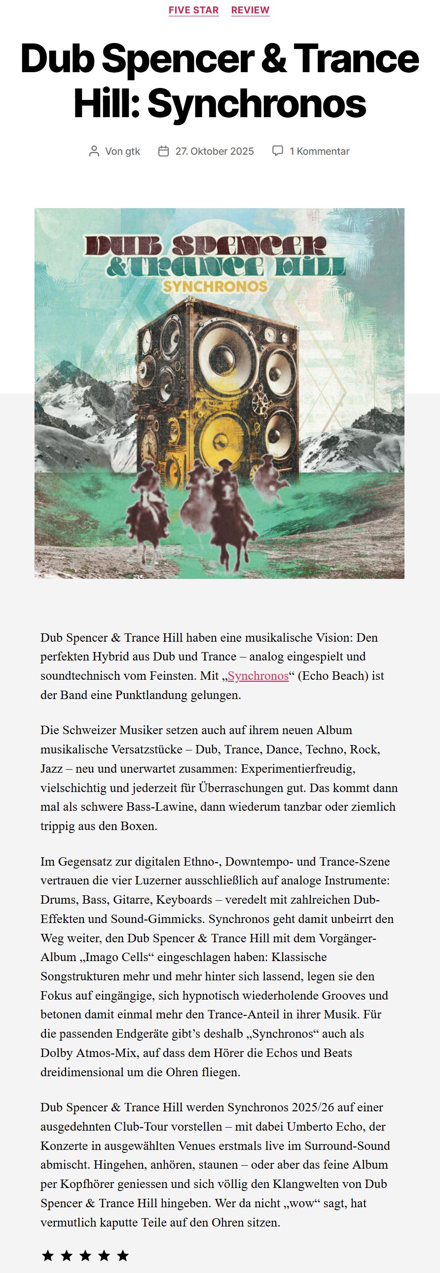presstext "DUB SPENCER & TRANCE HILL" (english)